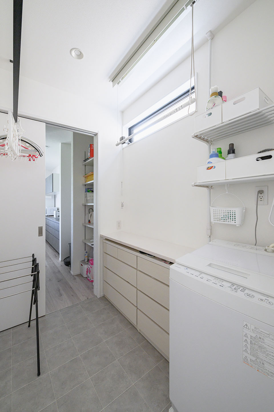 洗濯・干す・しまうの動作が一室で完結するランドリールーム。