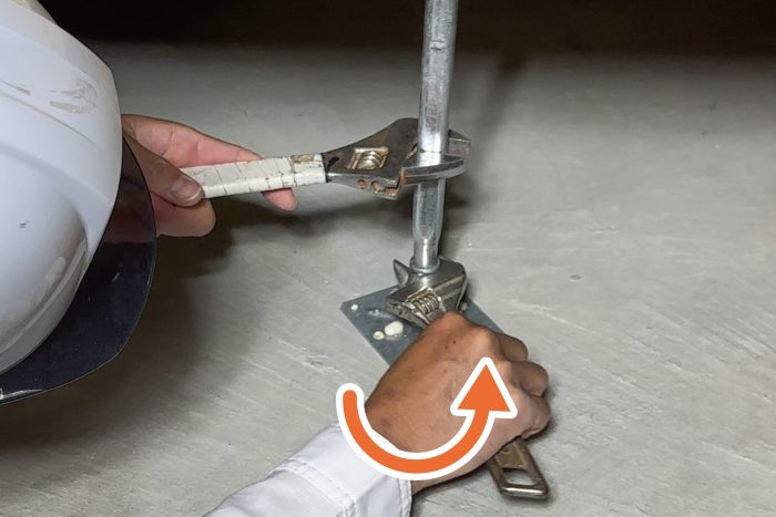 鋼製束を回し、他の鋼製束と高さがそろうように調整します。