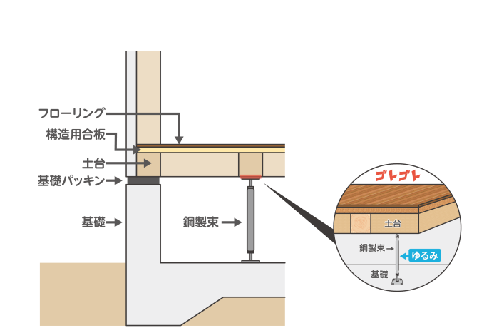 「コトコト」と音がする場合は、床を支える部材(鋼製束など)にわずかなゆるみが出ている可能性があります。