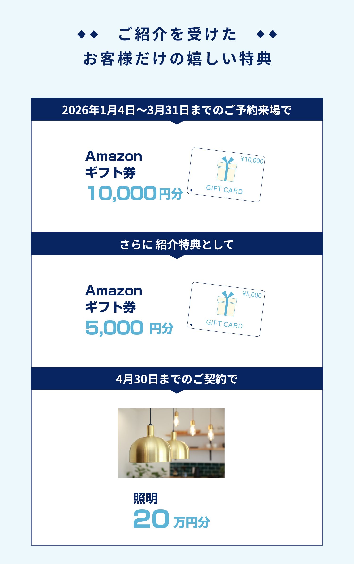 • ※ご来場イベントのエントリールールに則ってご来場頂けなかった場合や、ご相談の内容により建築のご予定がないと当社にて判断させて頂いた場合は、ご来場特典の送付を中止させていただく場合がございます。