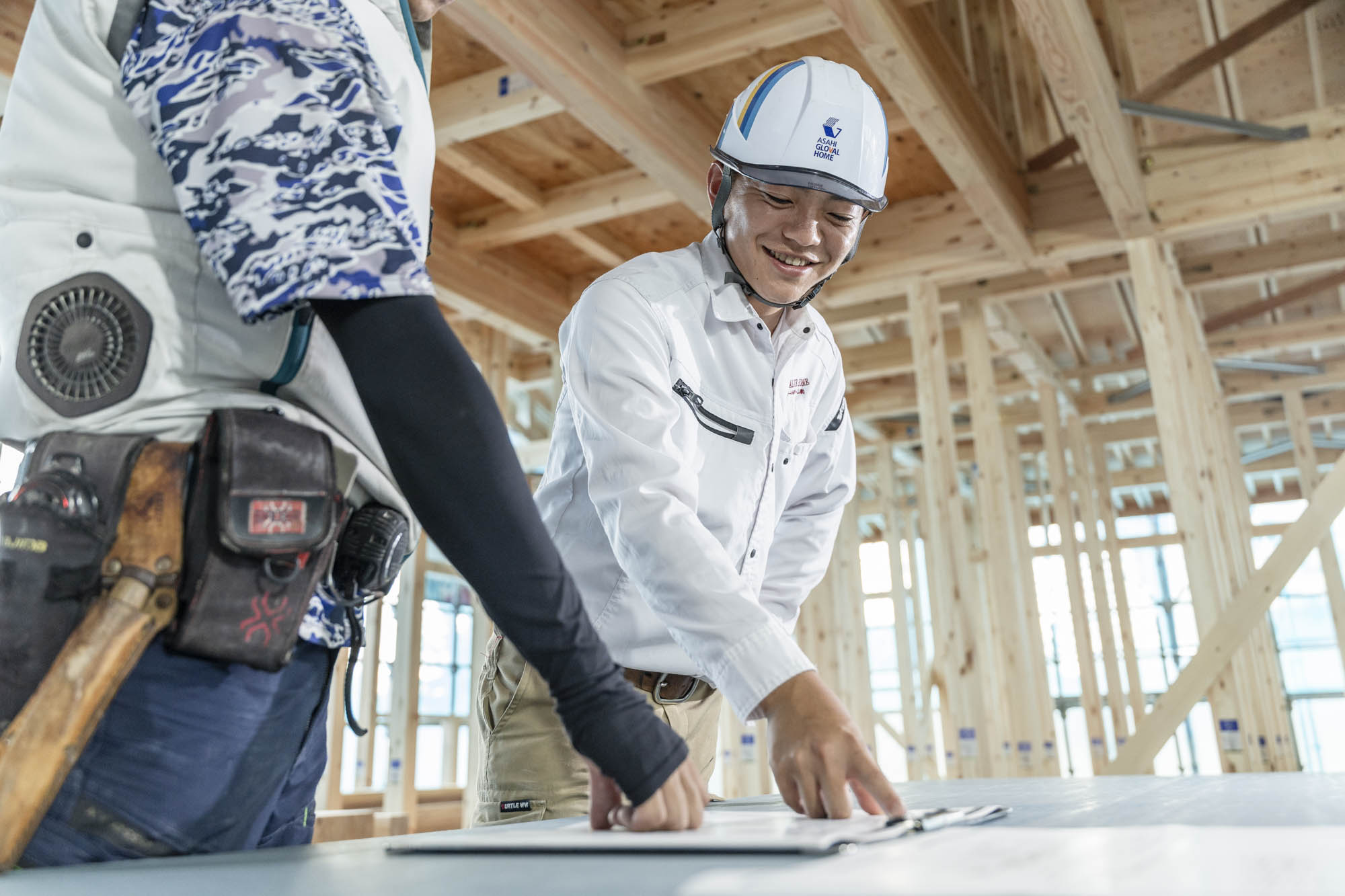 高校まではずっと地元で過ごして、大学は中部大学で建築を学びました。今は現場で家づくりの進行管理を担当しています。